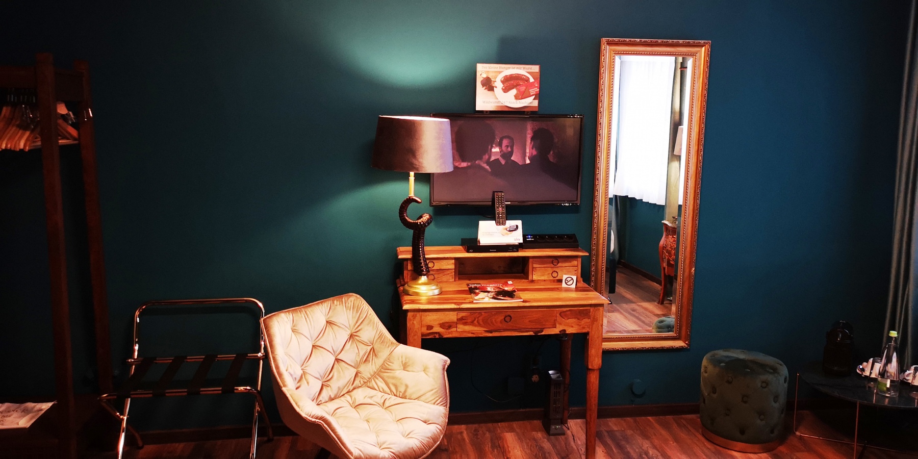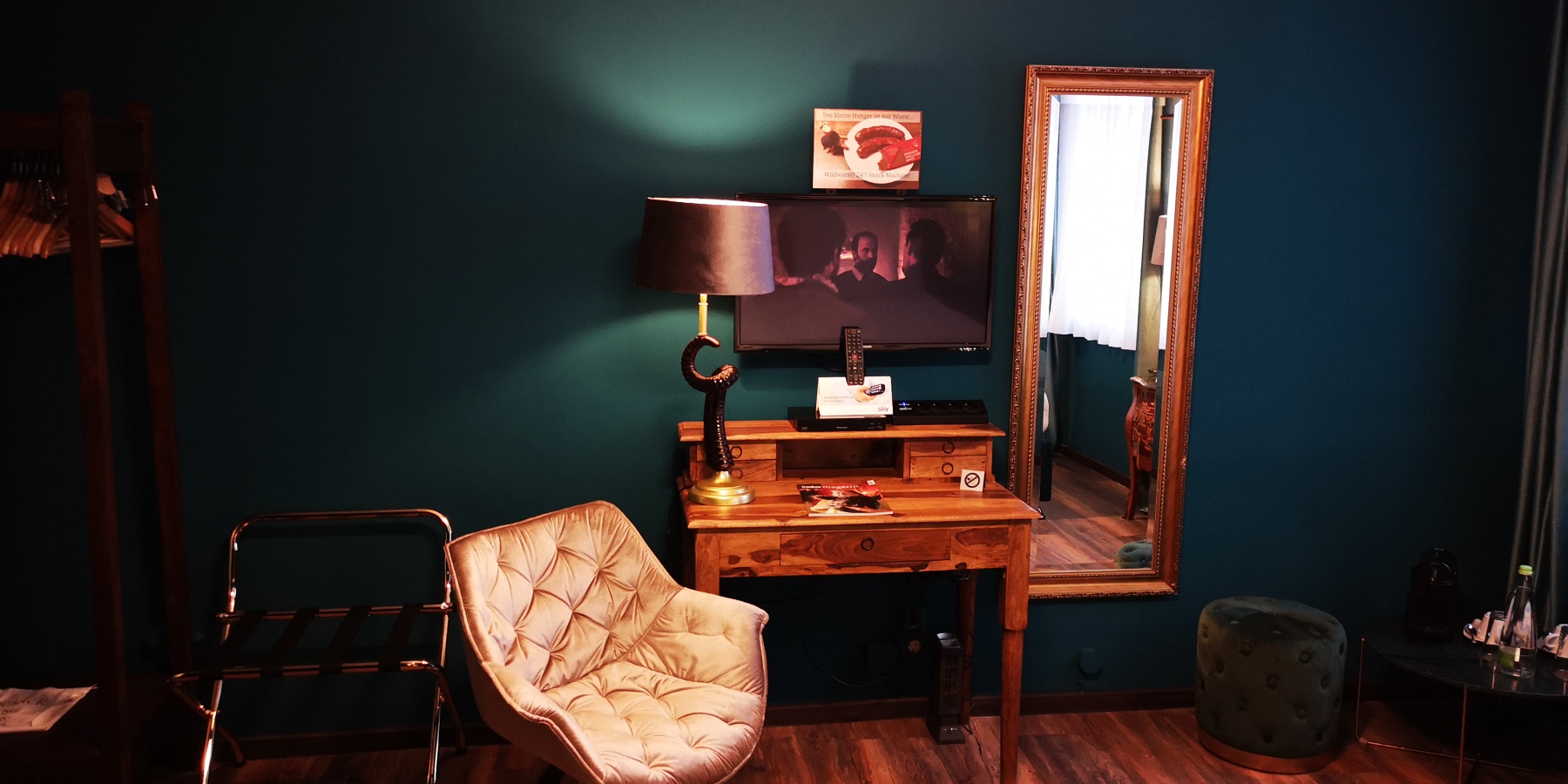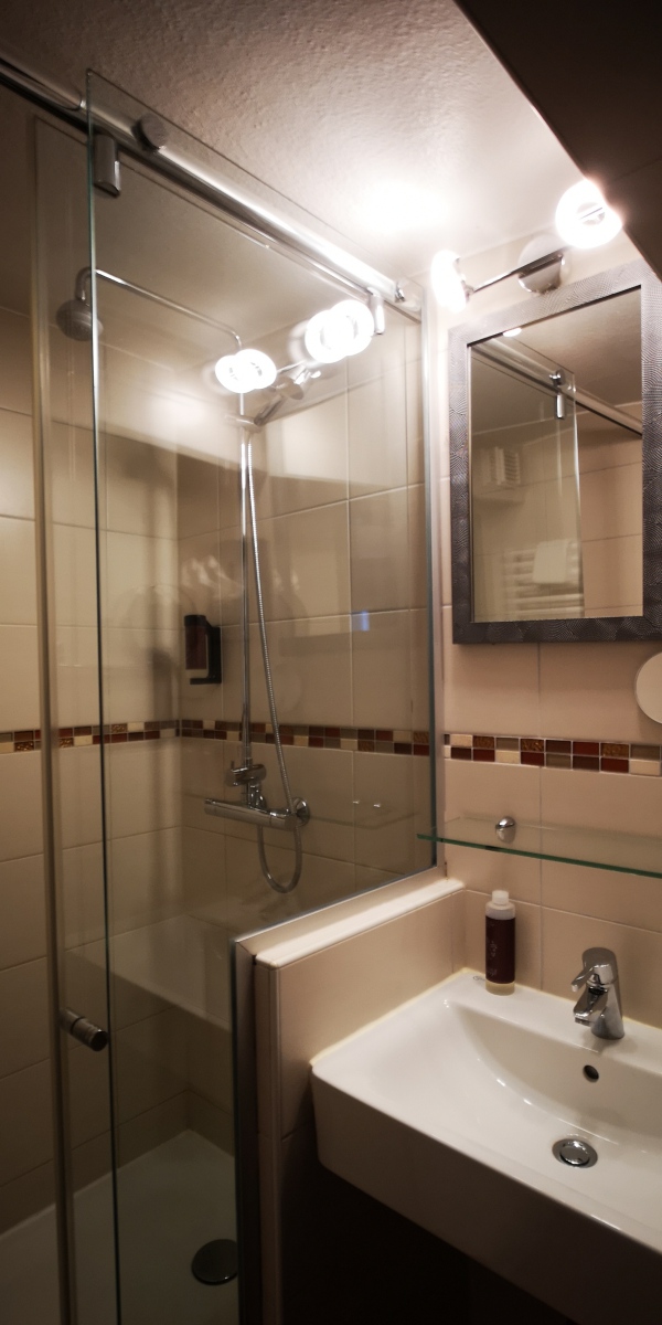 Separater Vorraum, daher ruhiger weil weniger Geräusche von anderen Zimmern wahrnehmbar. Dusche und Toilette getrennt in separaten Räumen. Antiallergisches Ökolaminat. Lage im 1.OG ohne Aufzug zur historischen Markgräflichen Kanzlei, Stadtgeräusche sind evtl. wahrnehmbar.